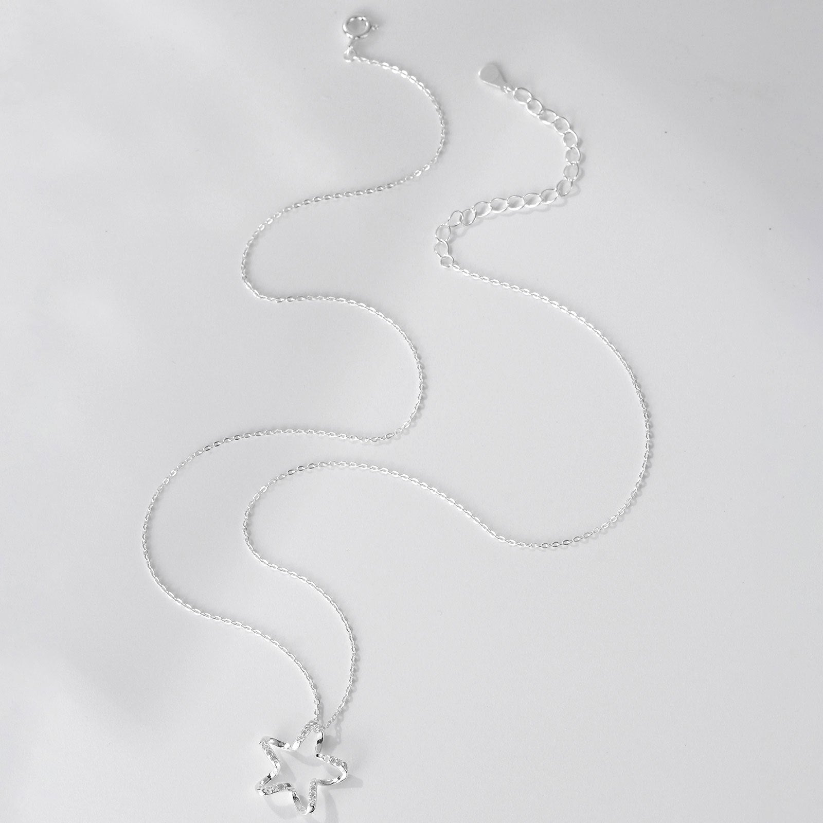 S999 Sterling Silver Five-pointed Star Ring Necklace Korean Style